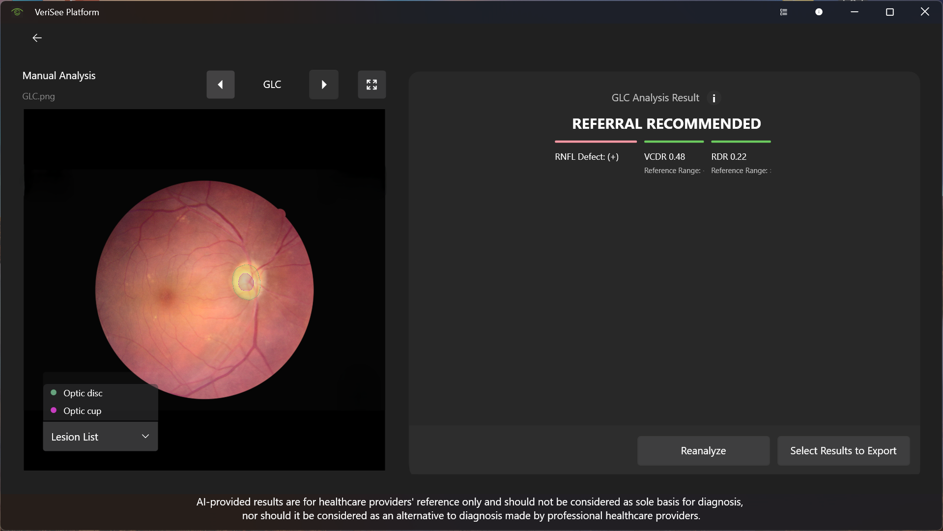 The software assists the healthcare providers in screening glaucoma suspects to assist in referral or other medical treatments